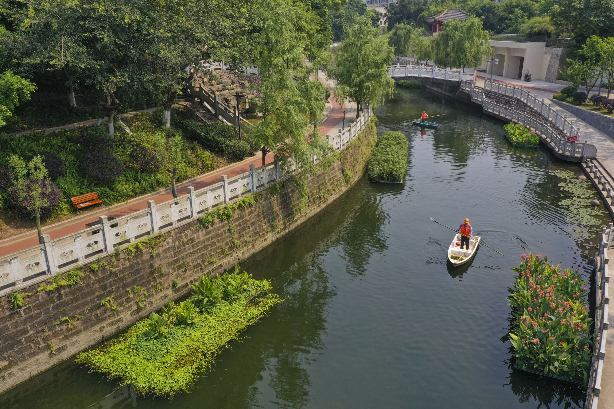 图为工作人员在重庆永川临江河红旗河段清漂(资料照片)。新华社记者 王全超 摄
